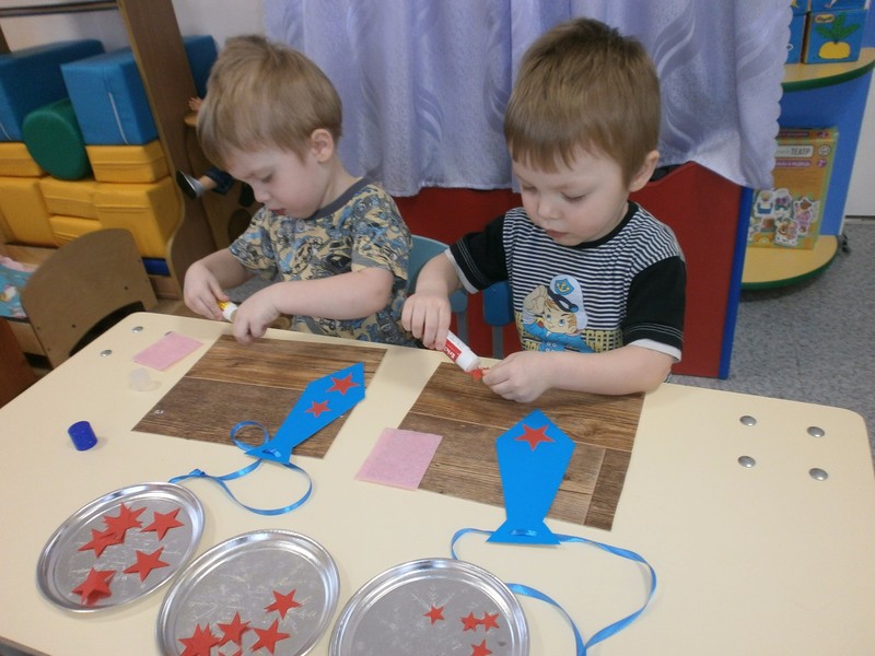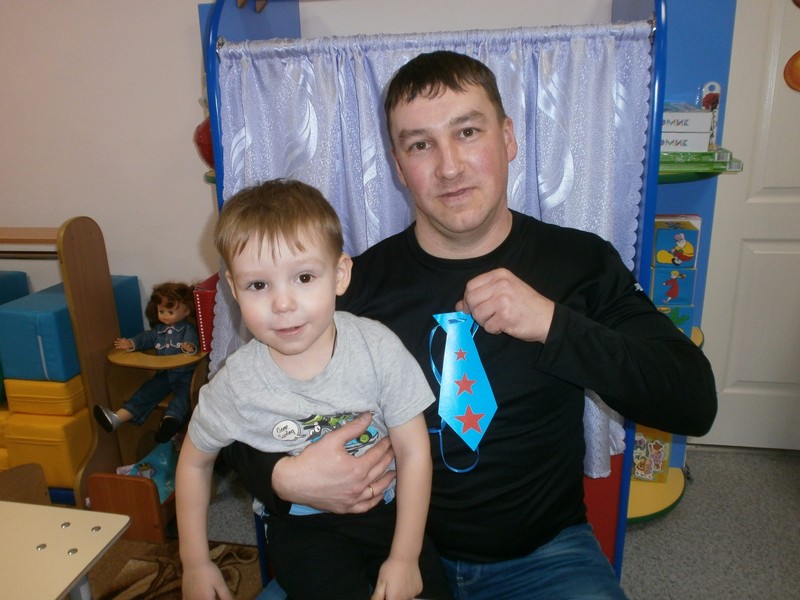 С целью формирования у малышей любви, уважительного отношения к папе, интереса к его профессии рассматривали с детьми дидактические картинки «Папы разные нужны, папы разные важны», проводили беседы «Как зовут моего папу», «Папа - мамин помощник», делали подарок «Галстук для папы», разучивали пальчиковую игру