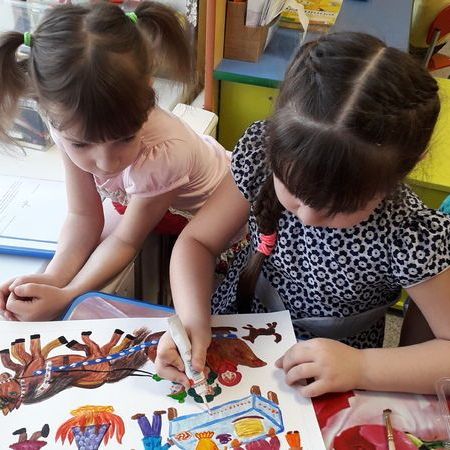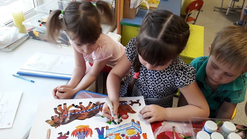 Рисунок «Веселая масленица», по содержанию стихотворения, совместно нарисовали: Арина М., София К., Дарья М., Диана Ш.
