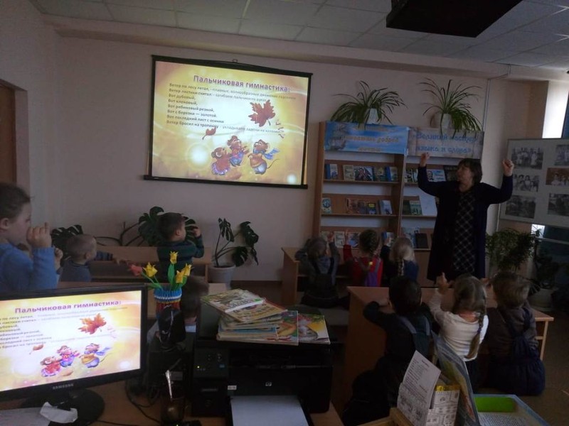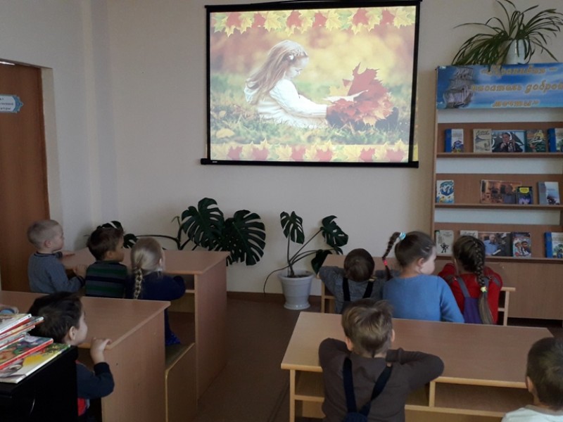 Много интересного ожидало детей в библиотеке. Они отгадывали загадки и пели песенку про осень,смотрели интересный мультфильм «Заяц хваста», играли в игры и рисовали. В завершении знакомства с библиотекой всех детей библиотекарь угостил сладостями.