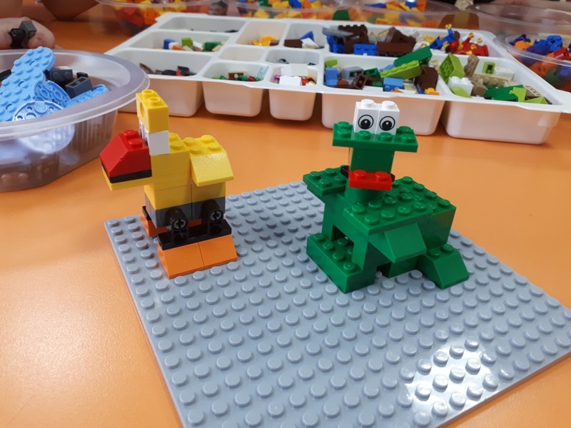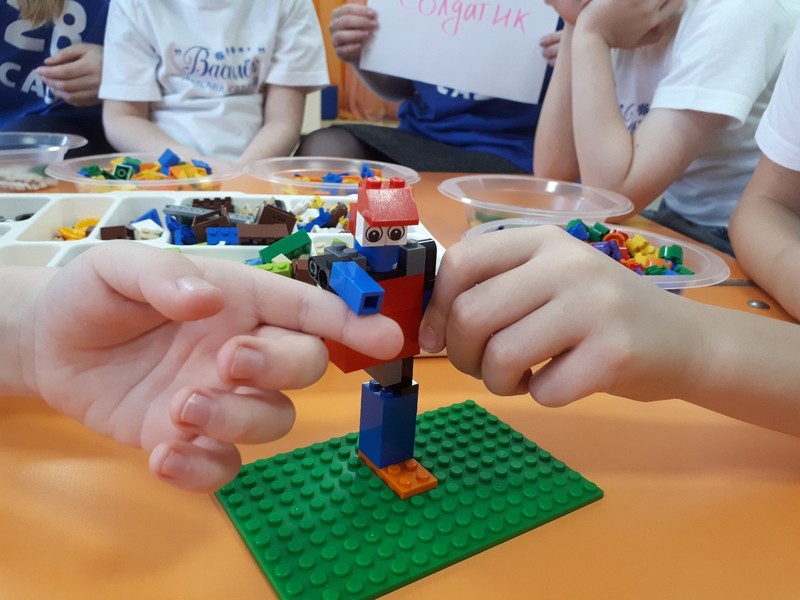 В соответствии с заданием игры команда «Знайки» правильно отгадала ребусы и загадки и собрали модели отгадок, используя LEGO – конструктор «Учись учиться». Это были модели Гадкого утёнка, Жабы, Оловянного солдатика.