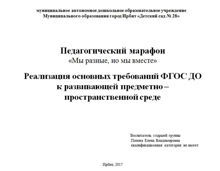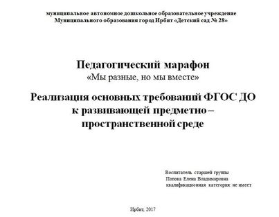 Попова Е.В. "Реализация основных требований ФГОС ДО к развивающей предметно - пространственной среде"
