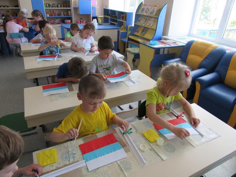 Дети закрепили цвета российского флага и изготовили флаг из цветной бумаги. Провели тематическое занятие «День России», на котором дети читали стихи о Родине, пели песни, танцевали. Свои впечатления дети выразили в рисунках.