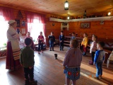 Дети старшей группы «Знайки» посетили «Музей народного быта». На пороге гостеприимного дома юных экскурсантов встречала доброжелательная хозяйка в нарядном сарафане. Увлекательный рассказ о предметах народного быта «перенес» всех присутствующих в старинный город Ирбит, где утюги накаливали при помощи углей, чай пили из самовара, половики изготавливали на специальных ткацких станках, а блины пекли только в русской печи. Сопровождалась экскурсия в прошлые века народными играми да забавами. А самым вкусным развлечением было угощение и чай из настоящего самовара.