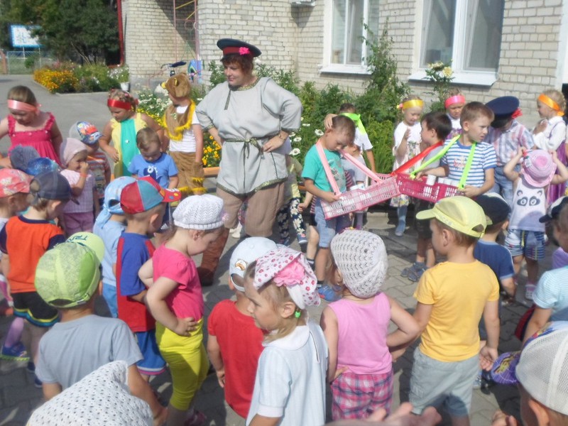 11 августа во дворе детского сада громко звучала плясовая музыка, а веселые нарядные купцы, приплясывая, предлагали товар: вазочки расписные, цветные браслеты да декоративные тарелочки. Все сувениры и украшения изготовлены собственноручно, одни на другие не похожи. А в замен люди торговые просили не злато, серебро, а веселую песню, стихотворение или танец разудалый. Тут уж покупатели не смогли устоять, исполняли все, к чему талант имели. Рядом с ними на протяжении всего праздника веселился дрессированный медведь, с каждым пускался в пляс: то галопом, то вприсядку. Ярмарка удалась на славу, каждый за свой талант получил не только сувенир, но и сладкий приз. В завершении мероприятия не было грустных лиц, ведь впереди всех ждало грандиозное, яркое событие, куда собирались дружными семьями – большая традиционная Ирбитская ярмарка.