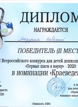 Наши награды / 2019-2020 учебный год Всероссийский конкурс "Первые шаги в науку - 2020 " Поделиться с друзьями:
